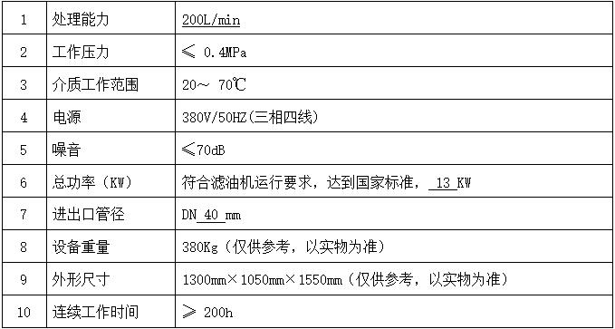 三、BY-JS系列降介损变压器油滤油机技术参数